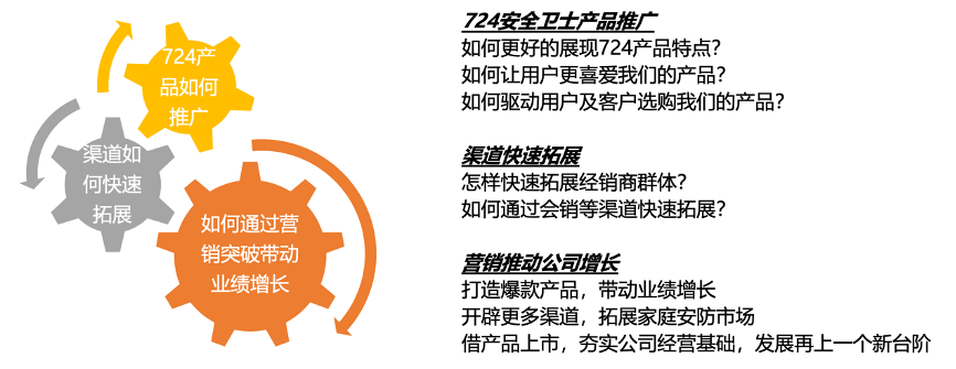 產(chǎn)品有特點,但在產(chǎn)品推廣、渠道拓展及營銷創(chuàng)新中,面臨著眾多問題。產(chǎn)品推廣中,需要進一步抓住產(chǎn)品特點,及驅(qū)動用戶更多選購我們的產(chǎn)品;渠道拓展中,需要找到快速拓展經(jīng)銷商的方法;同時,營銷要具有更多牽引作用,要能推動公司進入“下一輪增長”。