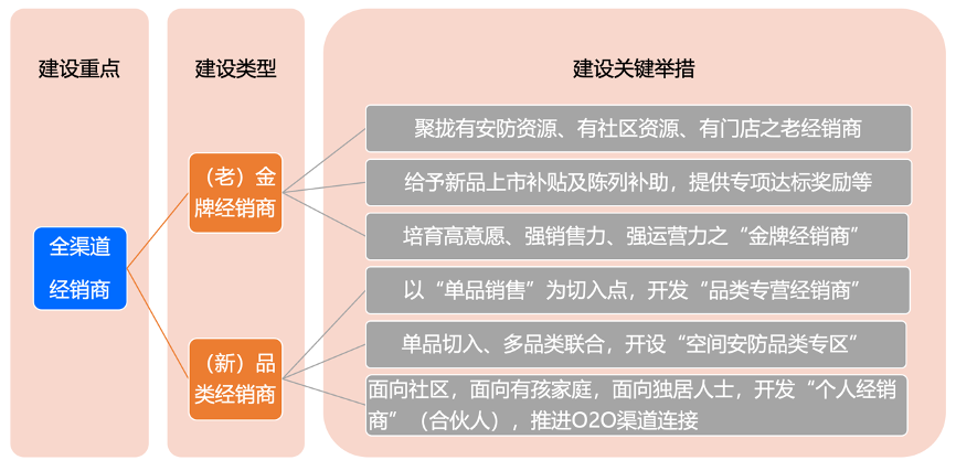 “金牌經(jīng)銷商” 是重點戰(zhàn)場,重在提升銷量、聚攏精英、盤活老渠道;“品類經(jīng)銷商”是核心戰(zhàn)場,重在“銷量+品牌”雙驅(qū)動、“個體+商戶”一起抓、全渠道做聯(lián)動。