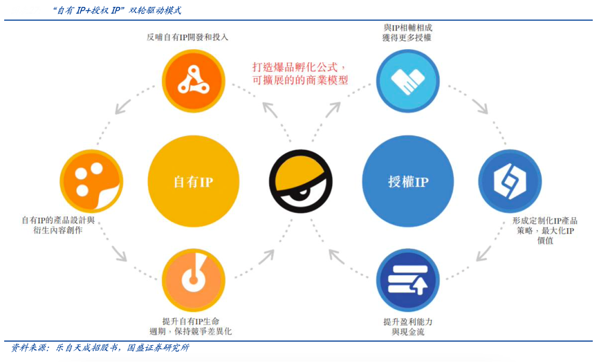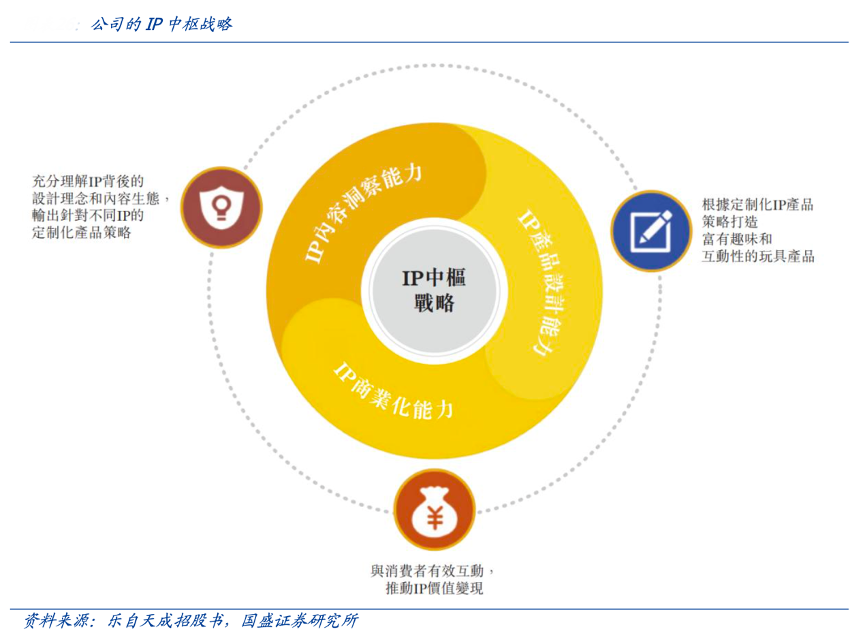 經典案例:根據樂自天成招股書、國盛證券研究所等綜合資訊表明,樂自天成公司以“IP中樞”戰略為核心,打造了覆蓋全產業鏈的一體化運營體系。